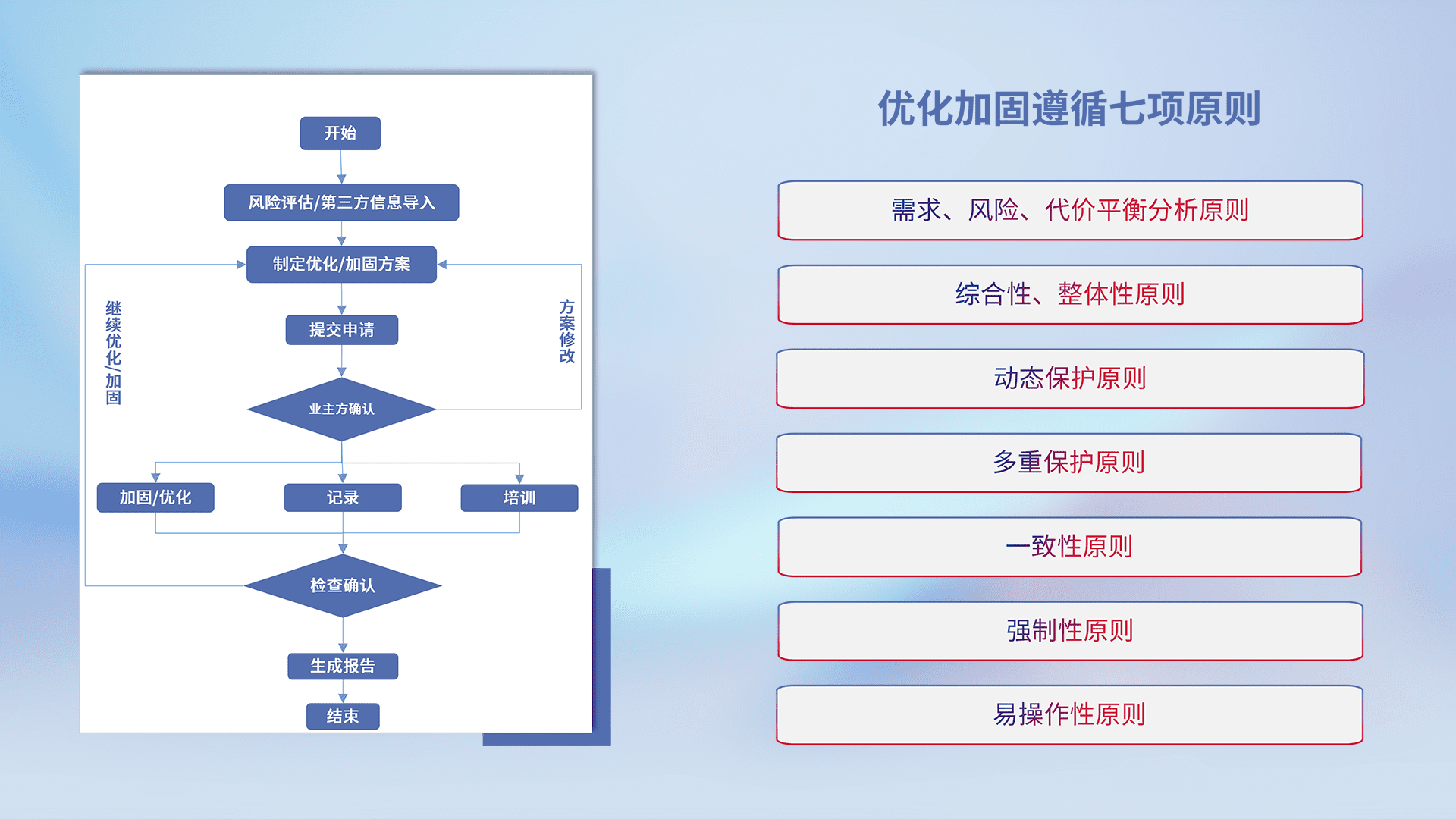 最大程度利用现有资产,,,对评估发现的问题进行封堵与整改,,,,防止漏洞被利用,,提升整体网络安全性,,,,为客户带来高标准的优化加固服务。。。