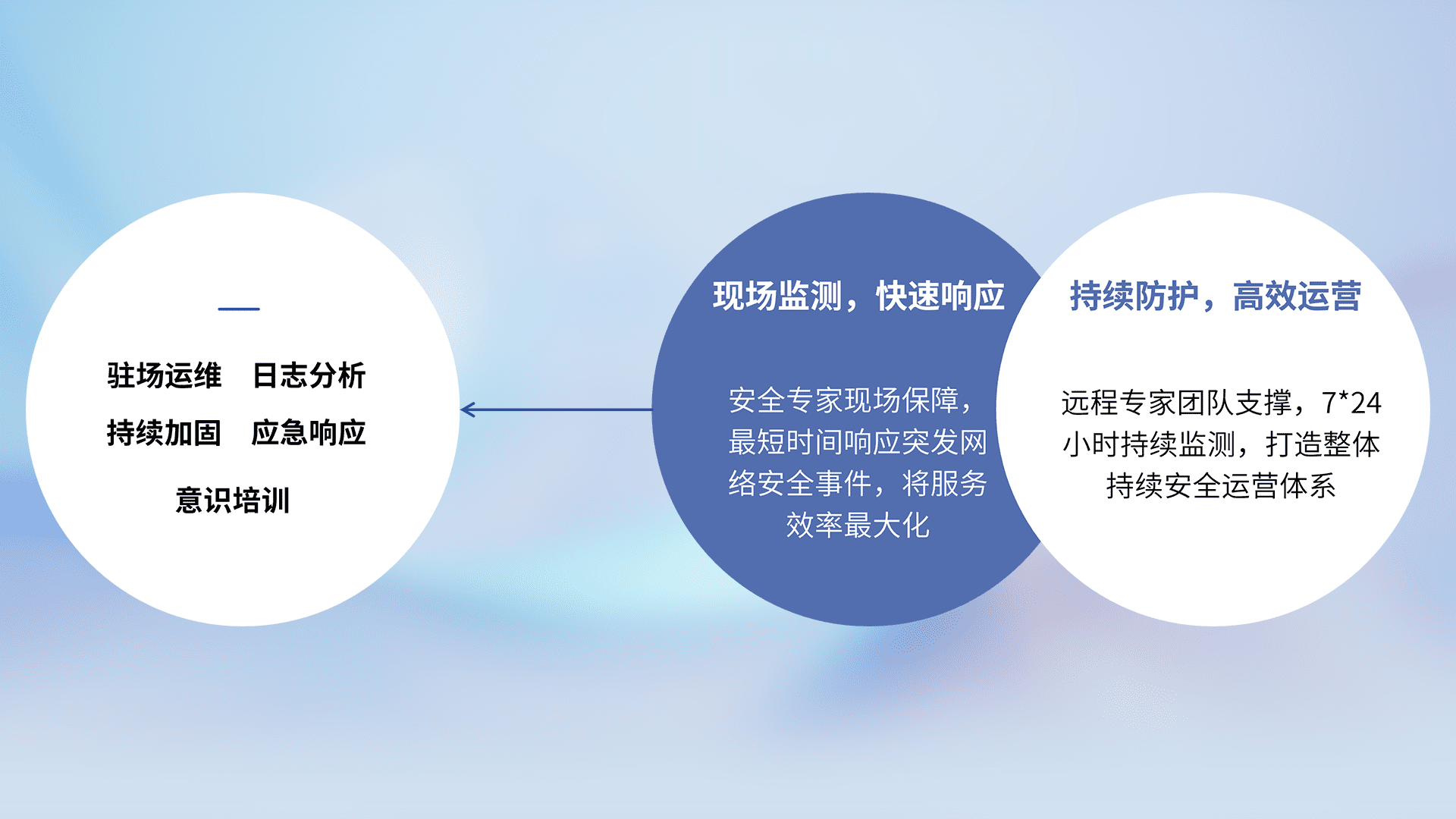 针对客户行业特性,,提供专属的一站式安全管理服务,,,,帮助客户全面感知网络空间威胁,,,通过安全专家的线上、、线下防护支持,,实现风险闭环,,,将安全保障常态化,,,,为客户打造常态化安全运维运营服务。。